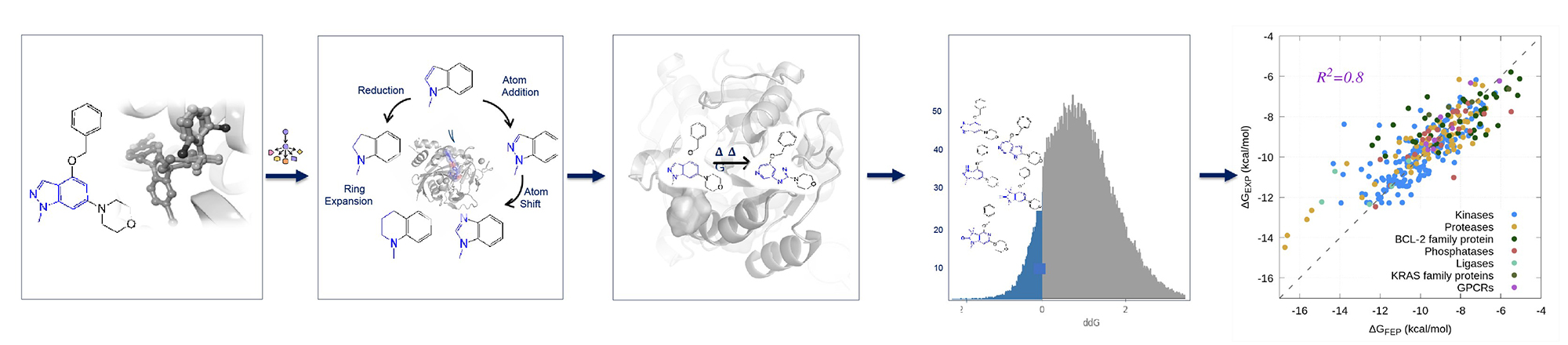 Rigorously identify new cores for any chemical series in a single workflow, utilizing generative design from TandemGen and our proprietary CoreHop-FEP.